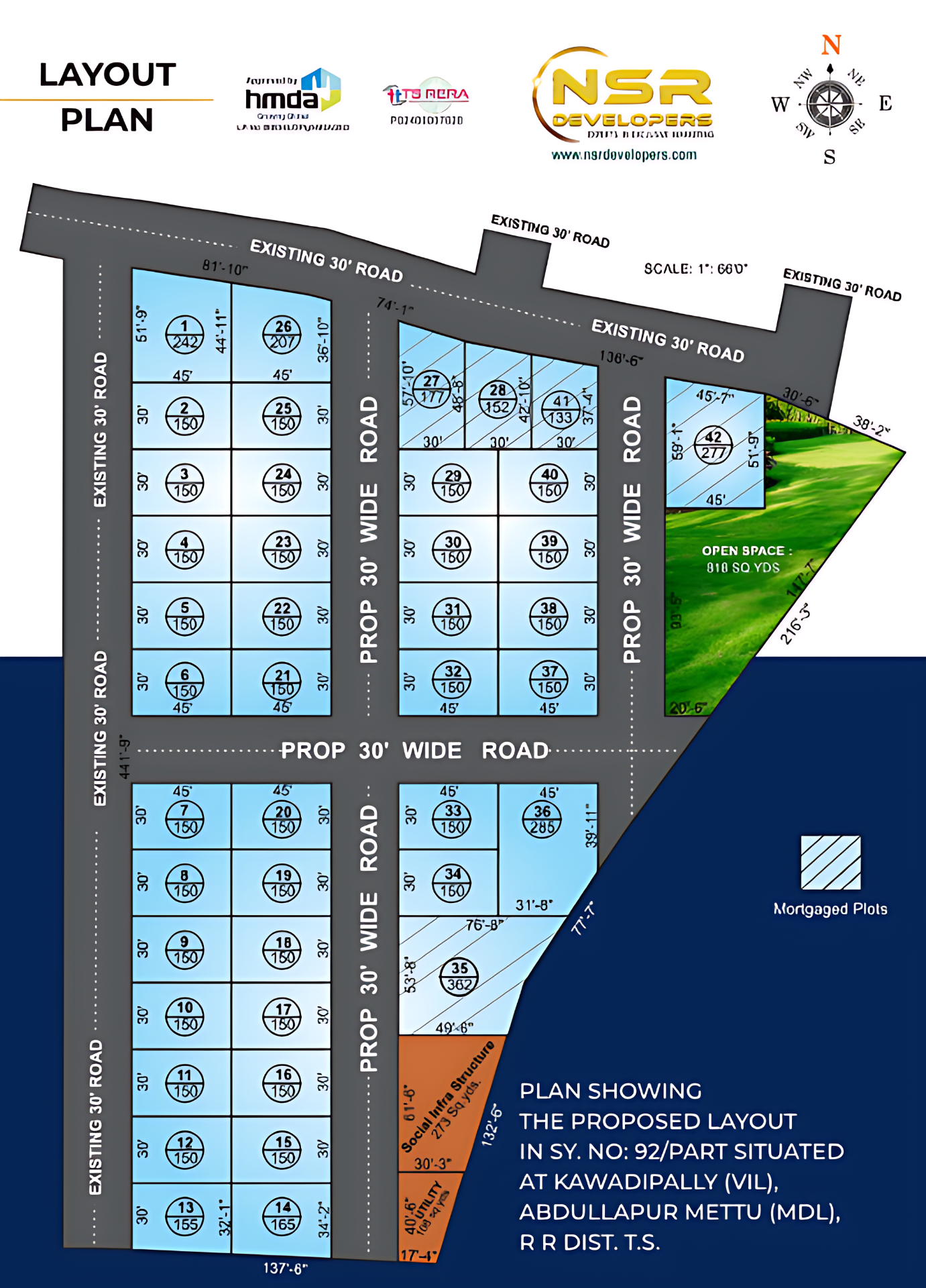 Reputed as one of the largest and leading real estate companies in Hyderabad Telangana. NSR Properties has successfully delivered the best real estate ventures in Hyderabad with Premium Locations for more than a decade. NSR Properties brings you another iconic project near Shadnagar an 800 acre fenced and guarded community project. This is the biggest DTCP approved venture in Telangana. The moment you venture into Ambience, you are moved to an alternate realm. The 800 section of land fenced and guarded community, comfort and charming environment. Wide smooth streets, impeccable solid, pockets of bushes, greenery against immaculate blue canvas will cause you to feel a special resident. owning a plot, either for investment or harping relies upon the improvement around it. Green Acres is one such spot. Situated in picture scene area encompassed by peacefulness and tranquillity on Hyderabad-Bangalore Highway, the territory is now a home for a considerable lot of esteemed undertakings like Mega Township of DLF, MyHome, Telengana Housing Board, Pharma SEZs, Amazon, Procter and Gamble and some more. The spot is encircled by bunches of Engineering compositions, instructive foundations. The undertaking is around 5 mins drive from the Shadnagar Railway Station and around 15 mins drive from the Hyderabad International Airport, and around 45 mins drive from Gachibowli.